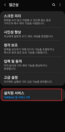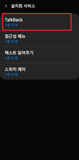 설치된 서비스 → TalkBack