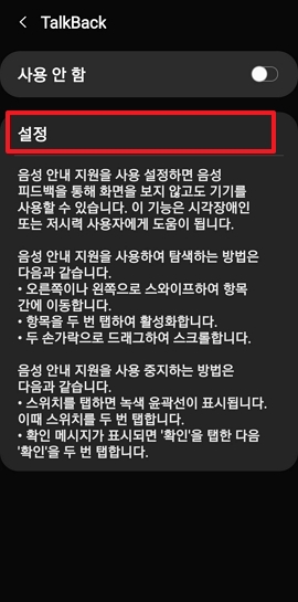 TalkBack → 설정