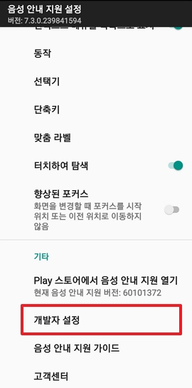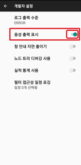 개발자 설정 → 음성 출력 표시 켬